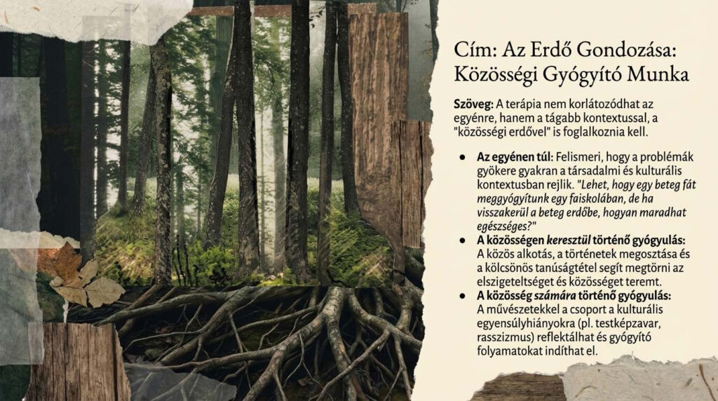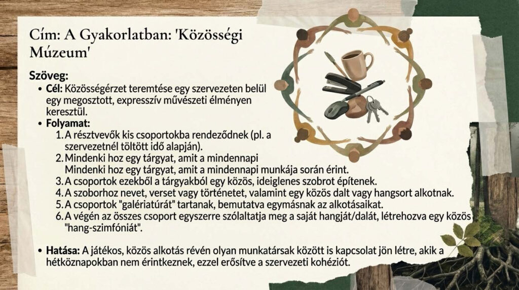 4. Közösség: A művészetek közösségépítő ereje, a „communitas” élménye alapvető fontosságú, ahol a résztvevők egyenlőkként kapcsolódnak egymáshoz