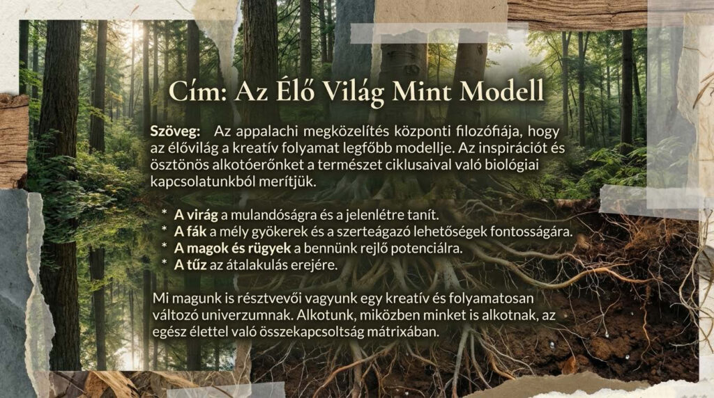 2. Természet mint modell: A kreatív folyamatot a természet ciklusaihoz (születés, virágzás, hanyatlás, halál, újjászületés) hasonlítják, és a természetet tekintik a kreativitás mintájának